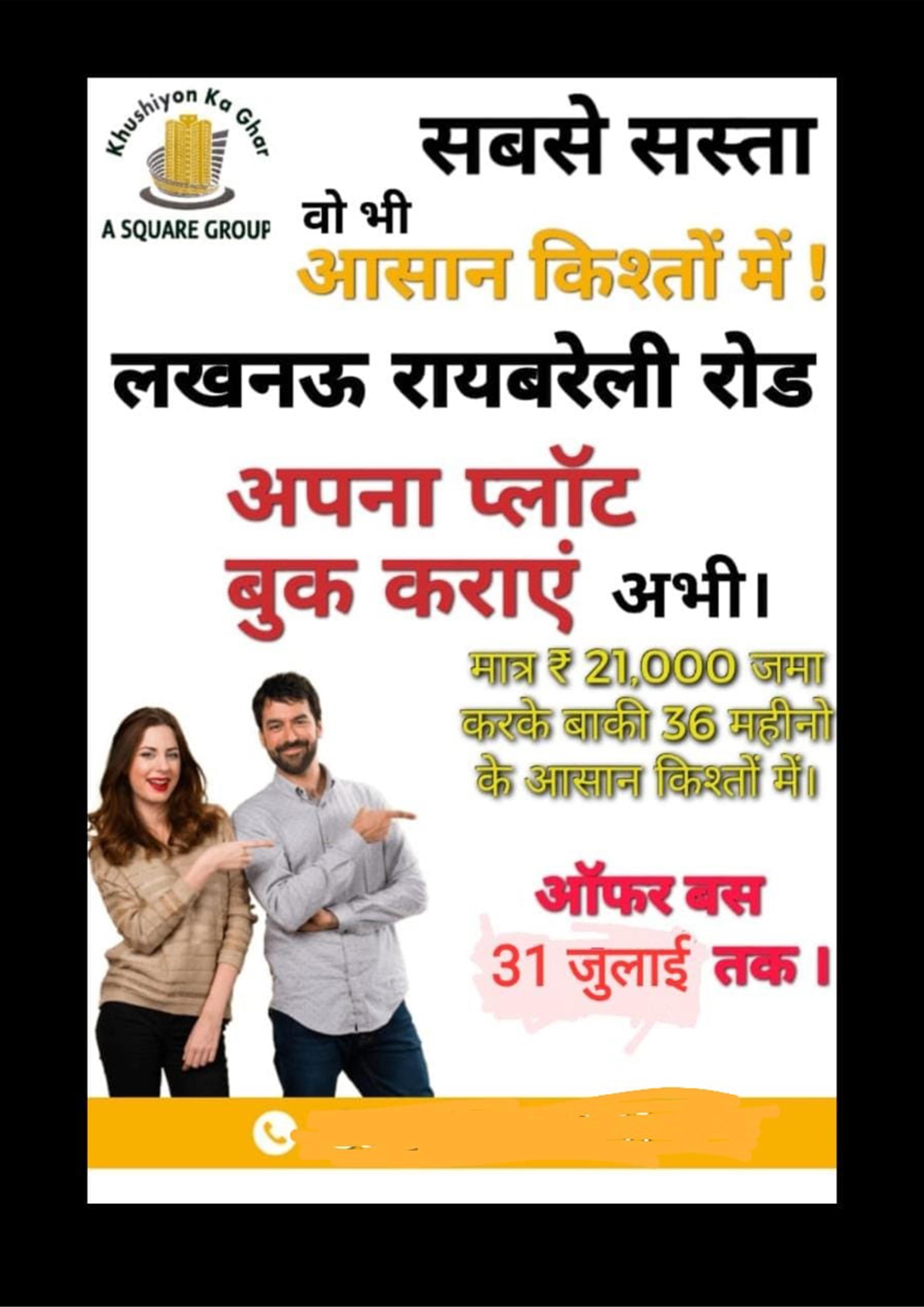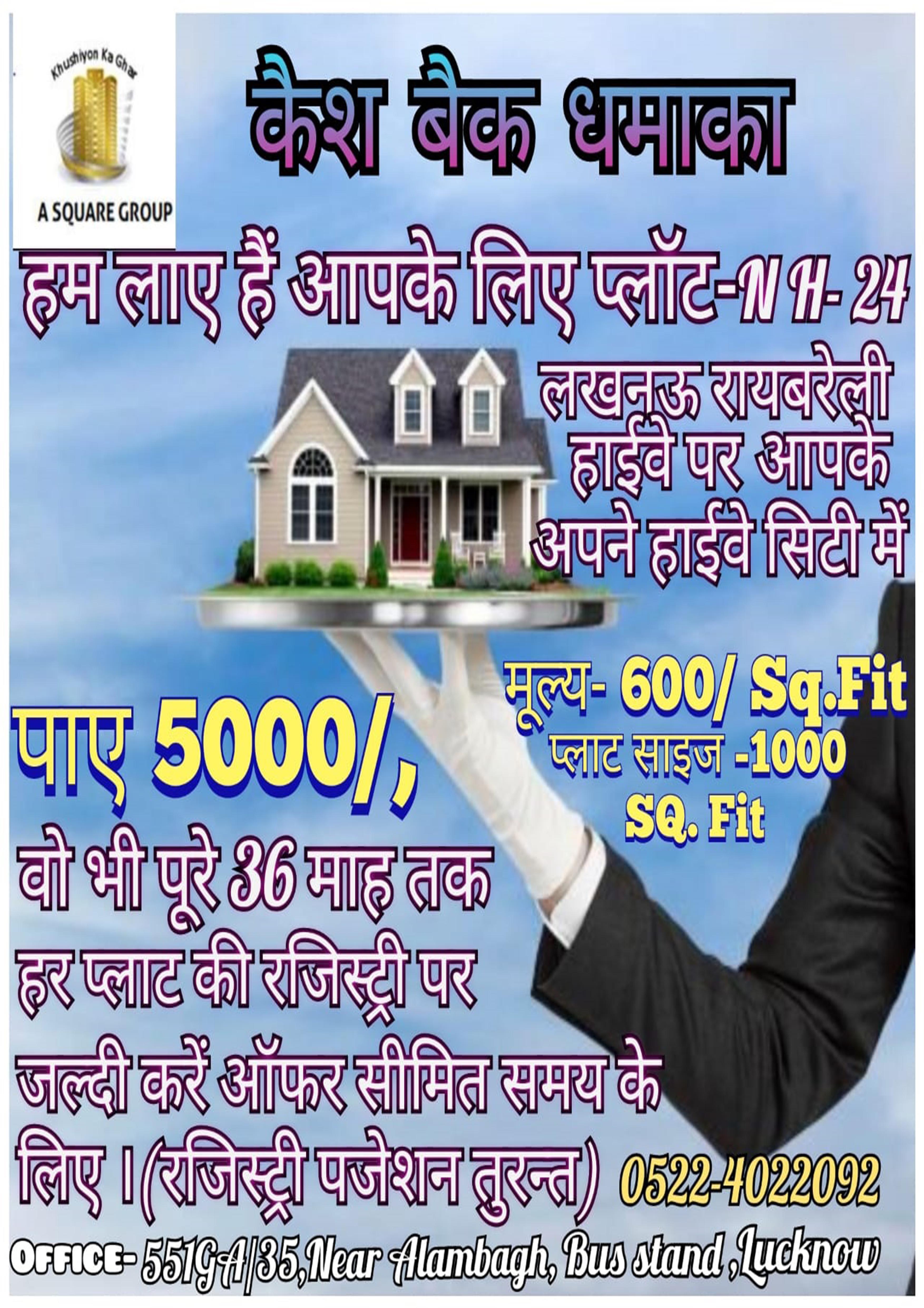 On registry of 1000Sqft plot on B block get 5000/- per month tile 3 year (36 Month) registry & position available.